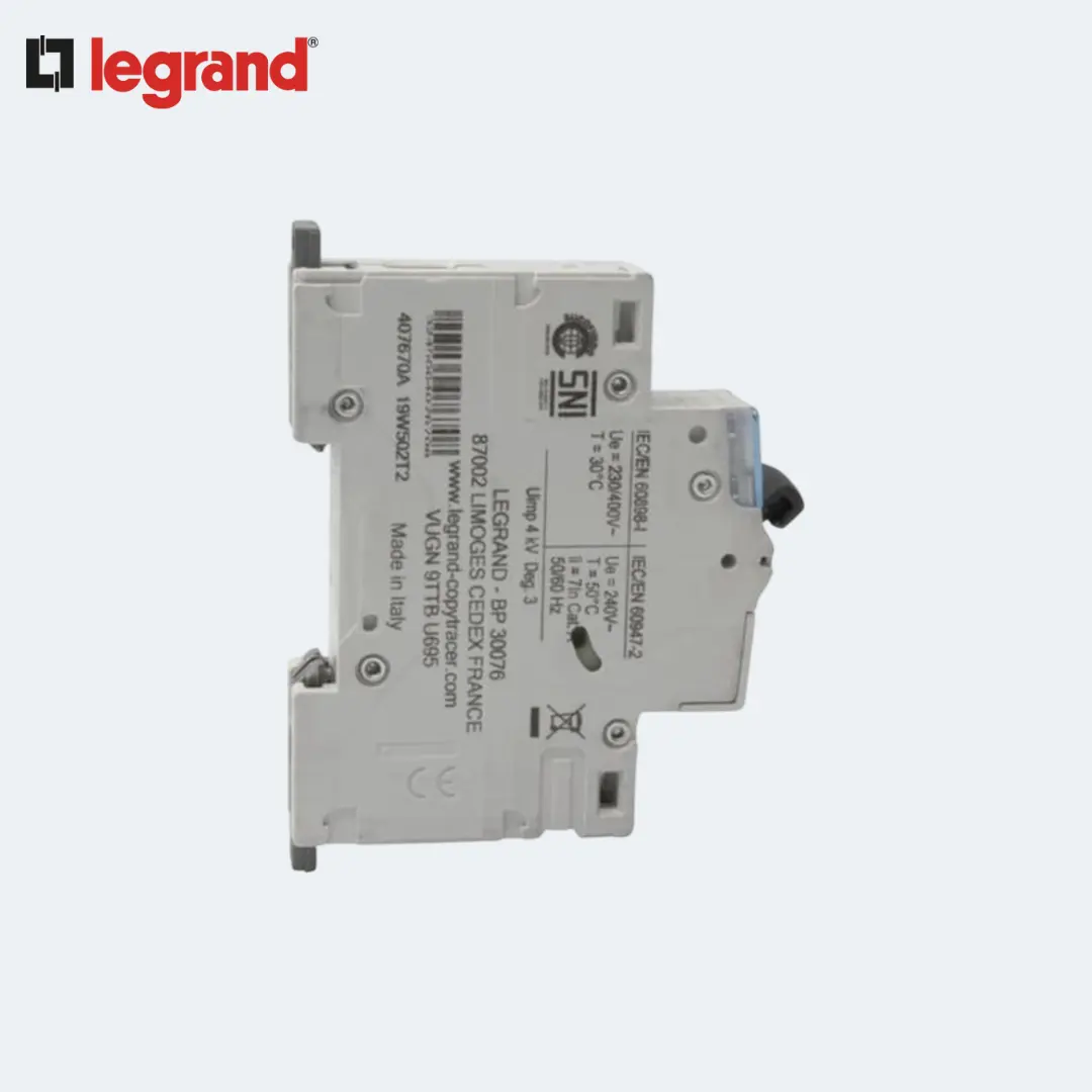 El interruptor magnetotérmico DX³ 6000 de Legrand es un dispositivo de protección diseñado para instalaciones monofásicas. Con una capacidad de corte de 10 kA, 1 polo y curva C, es ideal para proteger circuitos con cargas moderadamente inductivas, como pequeños motores o iluminación con balastos. Funciona a 230/400 Vac y soporta una corriente nominal de 16 A. Su diseño compacto y modular facilita la instalación en tableros eléctricos residenciales, comerciales o industriales, garantizando seguridad ante sobrecargas y cortocircuitos.