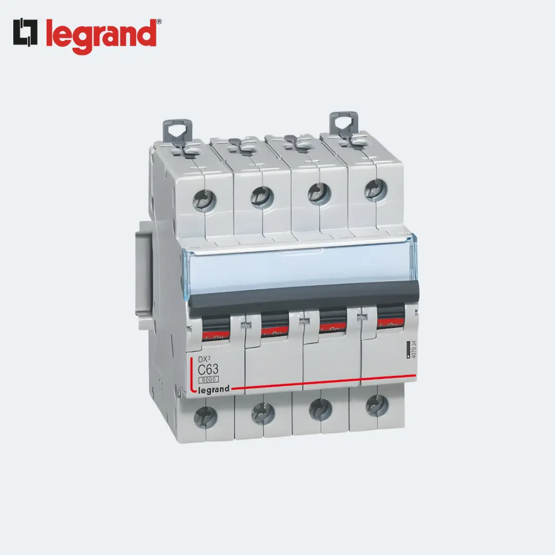 Interruptor magnetotérmico modular de la serie DX³ 6000, diseñado para la protección y maniobra de circuitos eléctricos trifásicos con neutro. Cuenta con 4 polos y una capacidad de corte de 10 kA conforme a la norma IEC/EN 60898-1, adecuado para instalaciones con alta potencia de cortocircuito. Su corriente nominal de 63 A y tensión de 400 Vac lo hacen ideal para proteger líneas y equipos de gran consumo.